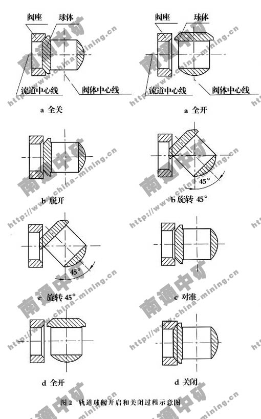 在關閉的狀態下,當執行機構帶動閥桿向上運動,其閥桿底部的角形平面使球體密封面傾離閥座,閥桿繼續提升并與閥桿螺旋槽內的導銷相互作用,使球體開始無摩擦旋轉90°直至閥桿提升位置,球體通孔對準閥門通道。