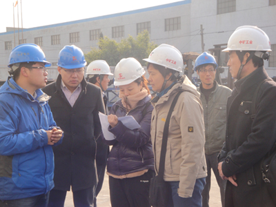 由起重運輸機械質量監督檢驗中心楊春平組長、趙夢盈組員、徐建平組員組成評審小組對我司進行評審,公司董事長周寶華、技術總監王成奎及各部門部長出席評審會。楊春平組長在聽取我司報告后,做出點評。評審小組在公司領導的陪同下對生產設施設備及車間進行考核,隨后著重檢查我司在工作過程中的各類文件資料,指出我司的不足,給出整改的建議,并對我司今后的發展抱有極大的希望。生產許可證的di一階段的審核,我司取得了圓滿的成功。