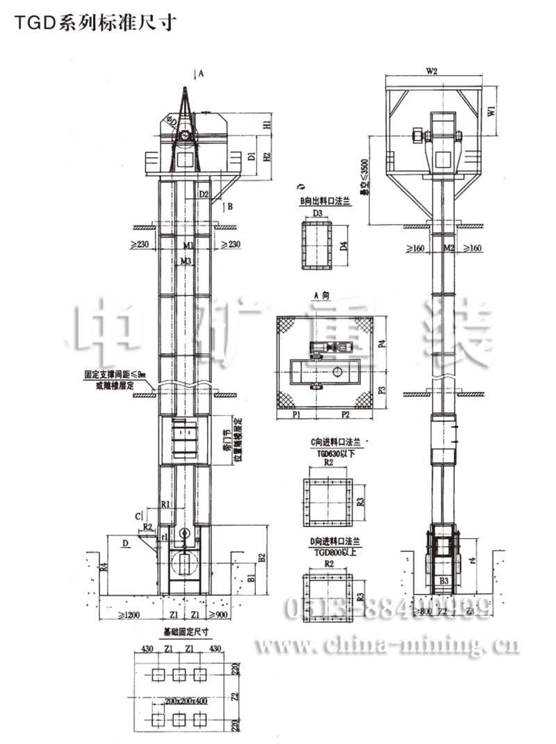 TGD Steel Wire Bucket elvator is a new product developed by CMHE that combined domestic production and use with foreign new technologies. This product is featured by large conveying capacity, small dimension, low power consumption, stable working and long service life. It is used for vertically lifting dry powdery and particulate materials in many industries, such as, building material, metallurgy, chemical, grain and power, etc. It is a good substitute for exported product of the same specification to be used for raw material charge at the kiln tail of the new dry process cement plant, raw - material homogenizing silo and cement silo.
